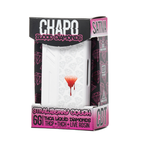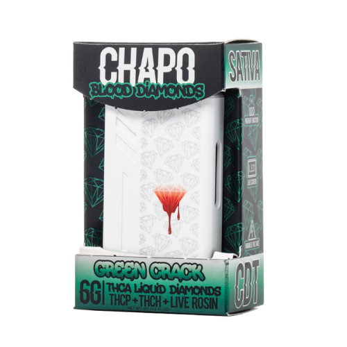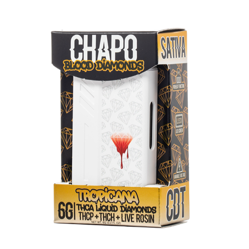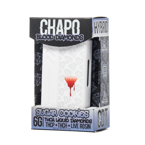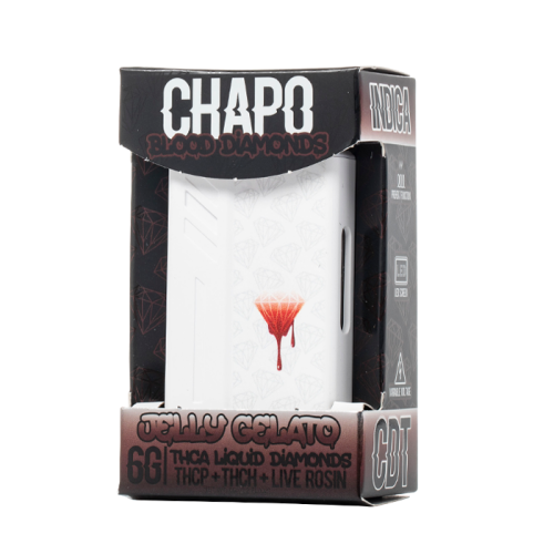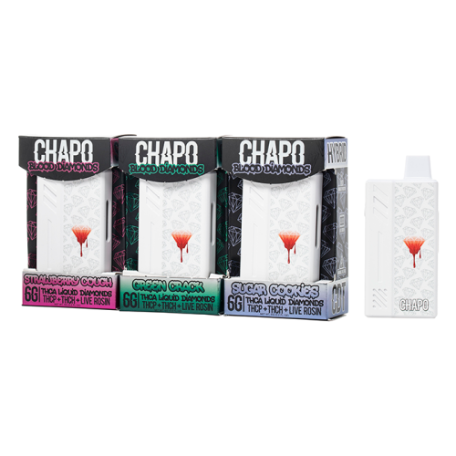 Discover Chapo Extrax Blood Diamonds Disposable, featuring 6 grams of THC-A, THC-P, and THC-H in a preheating disposable vape made with live resin and liquid diamonds.