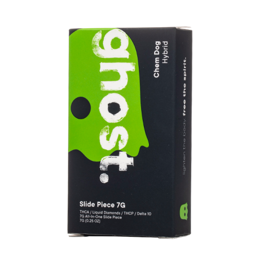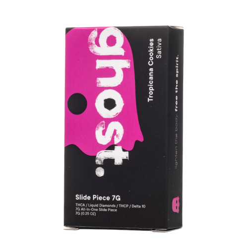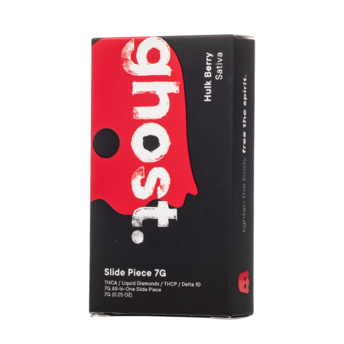 Check out the Ghost Slide Piece Disposable, featuring two 3.5 gram tanks filled with THC-A liquid diamonds, THC-P, and Delta 10 THC inside a dual firing disposable.