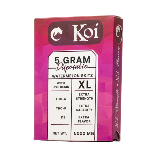 Check out the Koi THCA + THCP + D9 Disposable, featuring a 5 gram blend of live resin THC-A, THC-P, and Delta 9 THC in a lively disposable with preheating. Made with potent THC-A, THC-P, and Delta 9, Koi adds botanical terpenes to recreate the listed strain.