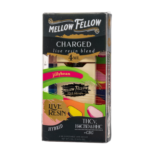 | Shop the Mellow Fellow Charged Blend Live Resin Disposable, packing 4 grams of HHC, H4CBD, CBG, and THC-V for an invigorating blend in a disposable vape. Taking delicious live resin terpenes, the concentrate within is sure to dazzle the taste buds. With complementary cannabinoids that contribute to the Entourage effect, the Mellow Fellow Charged Blend Live Resin Disposable is ideal for those that are constantly busy or on-the-go.