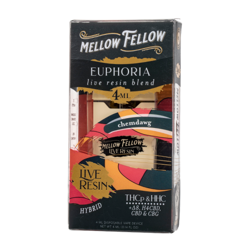 Check out the Mellow Fellow Euphoria Blend Disposable, offering 4 grams of delta 8, HHC, H4CBD, CBD, CBG, and THC-P cannabinoids for a lively vape blend. Packed with live resin and terpenes, this blend will supercharge the mind and body, helping against fatigue and stress.